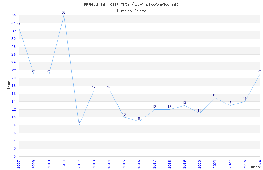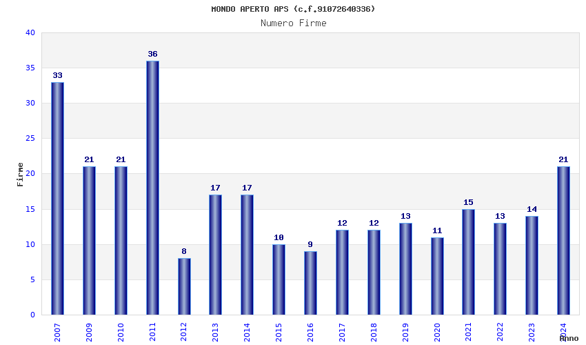 | Anno | Firme | Importi | Media | Naz. | Reg. | Prov. | Comu. |