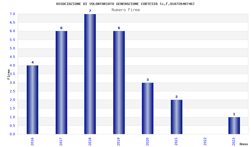 | Anno | Firme | Importi | Media | Naz. | Reg. | Prov. | Comu. |