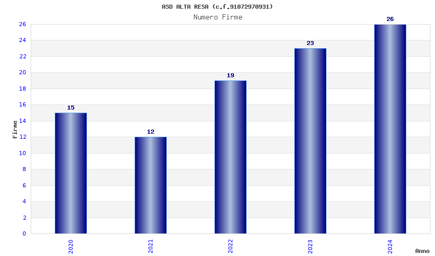 | Anno | Firme | Importi | Media | Naz. | Reg. | Prov. | Comu. |