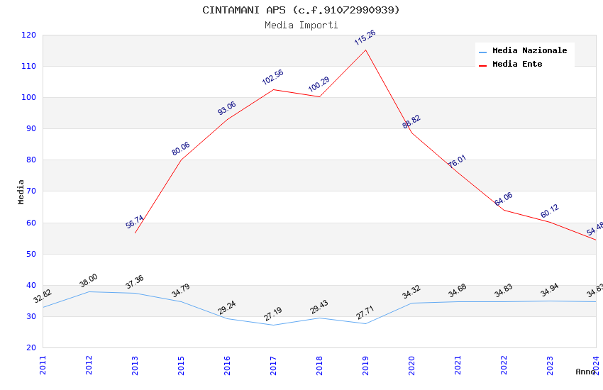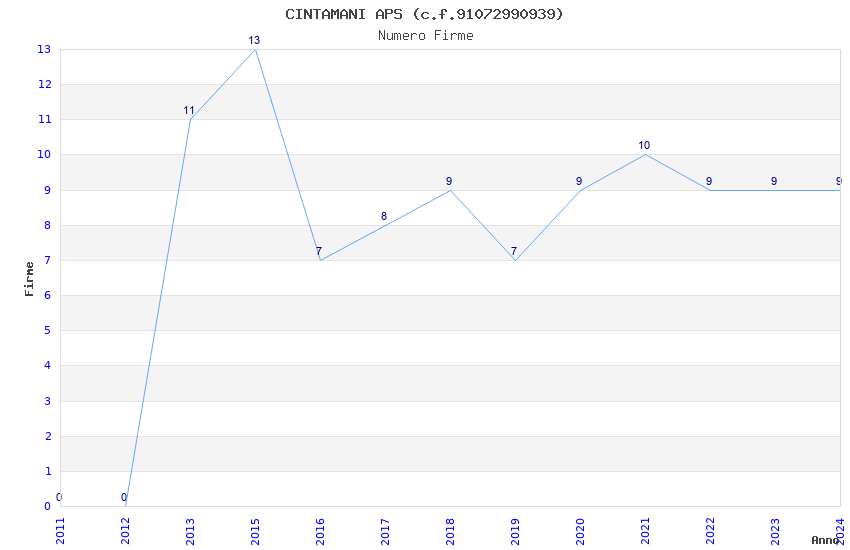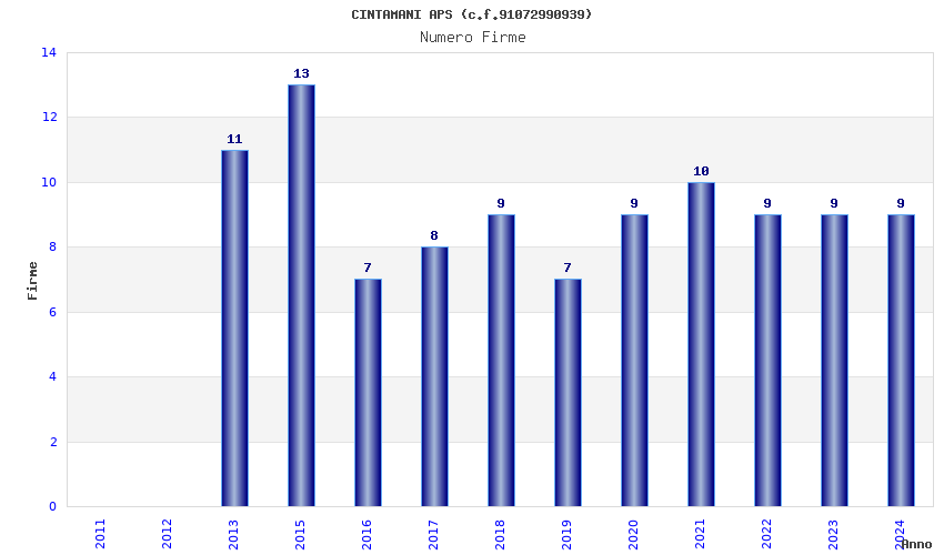 | Anno | Firme | Importi | Media | Naz. | Reg. | Prov. | Comu. |