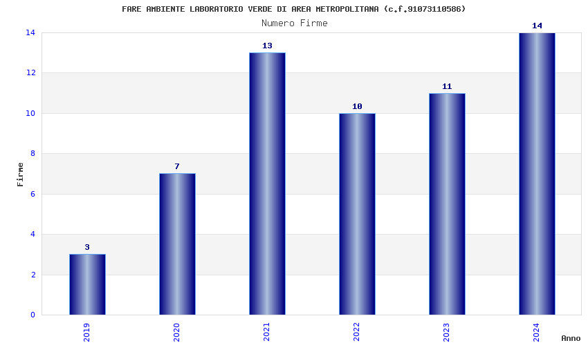 | Anno | Firme | Importi | Media | Naz. | Reg. | Prov. | Comu. |