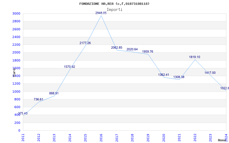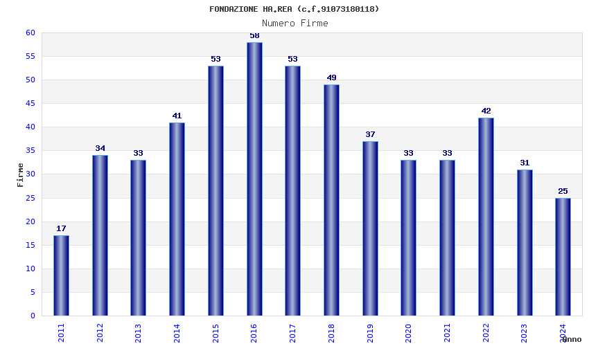 | Anno | Firme | Importi | Media | Naz. | Reg. | Prov. | Comu. |