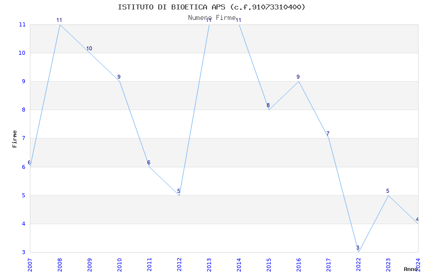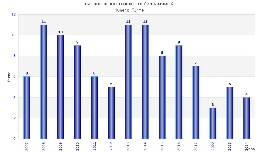 | Anno | Firme | Importi | Media | Naz. | Reg. | Prov. | Comu. |