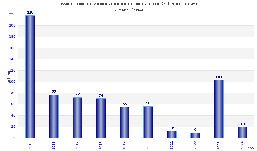 | Anno | Firme | Importi | Media | Naz. | Reg. | Prov. | Comu. |