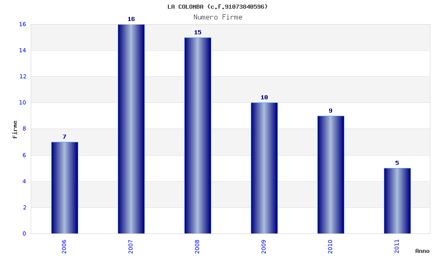 Anno Firme Importi Media Naz. Reg. Prov. Comu.