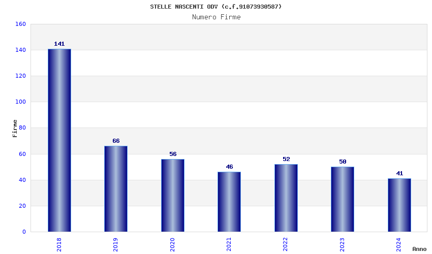 | Anno | Firme | Importi | Media | Naz. | Reg. | Prov. | Comu. |
