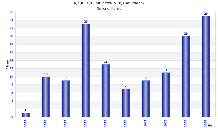 | Anno | Firme | Importi | Media | Naz. | Reg. | Prov. | Comu. |