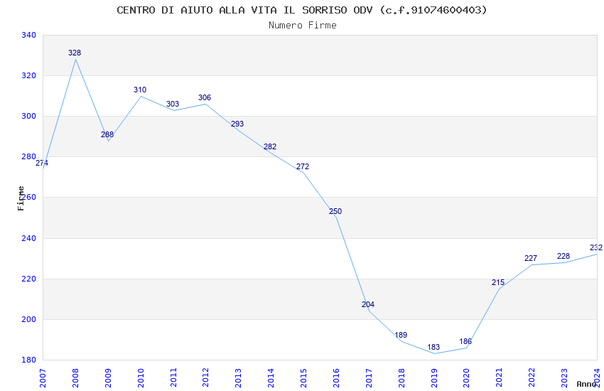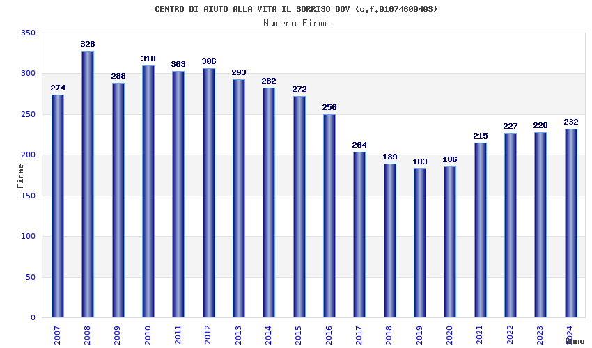 | Anno | Firme | Importi | Media | Naz. | Reg. | Prov. | Comu. |
