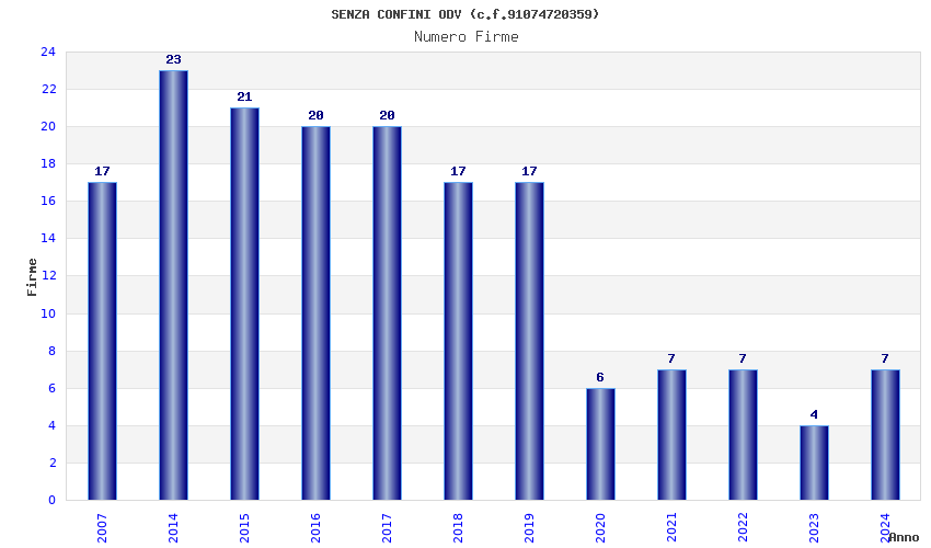 | Anno | Firme | Importi | Media | Naz. | Reg. | Prov. | Comu. |