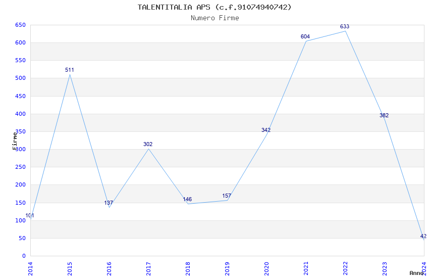 | 2024 | 42 | 1.096,22 | 26,10 | 35.700 | 1.881 | 170 | 4 |