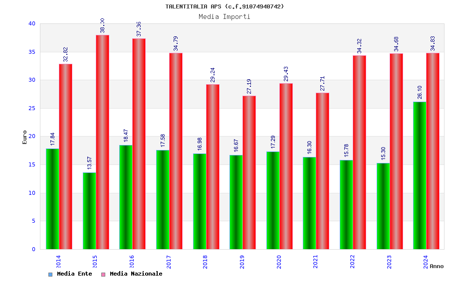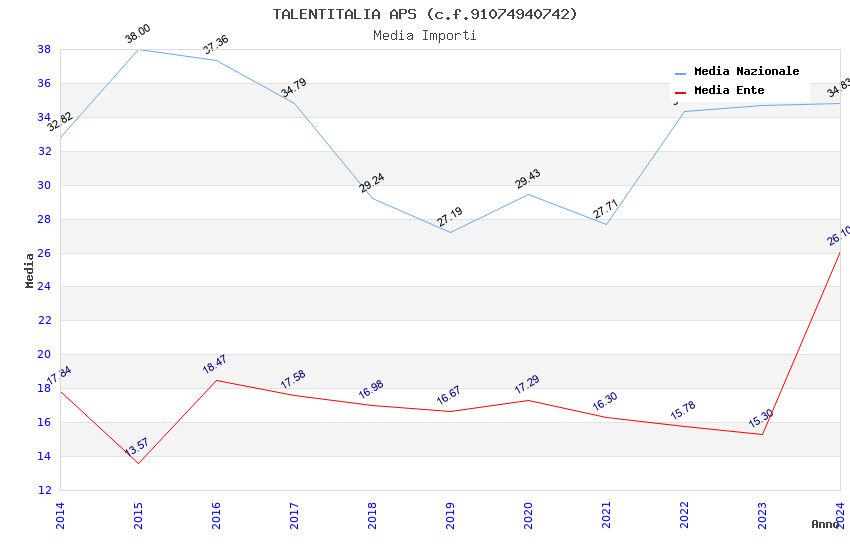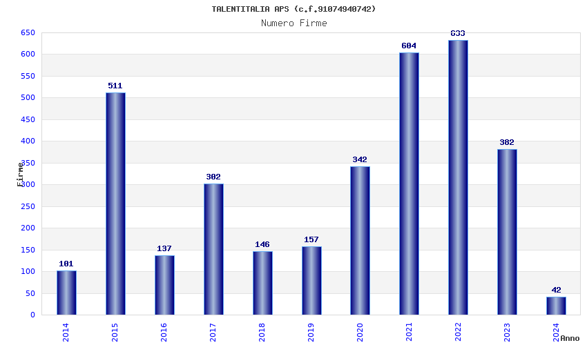 | Anno | Firme | Importi | Media | Naz. | Reg. | Prov. | Comu. |