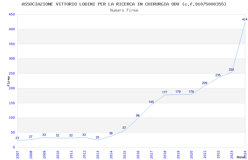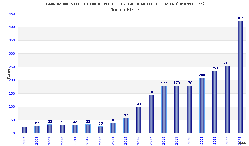 | Anno | Firme | Importi | Media | Naz. | Reg. | Prov. | Comu. |