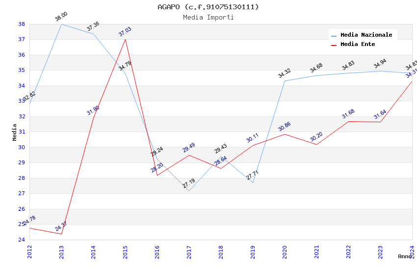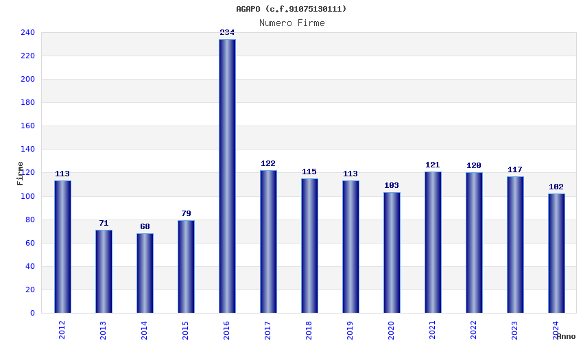 | Anno | Firme | Importi | Media | Naz. | Reg. | Prov. | Comu. |