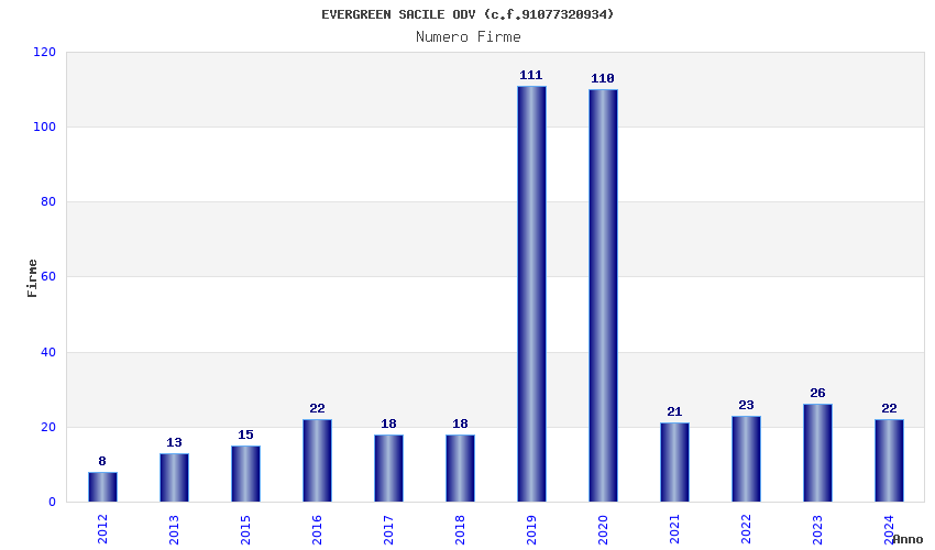 | Anno | Firme | Importi | Media | Naz. | Reg. | Prov. | Comu. |