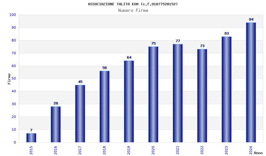 | Anno | Firme | Importi | Media | Naz. | Reg. | Prov. | Comu. |