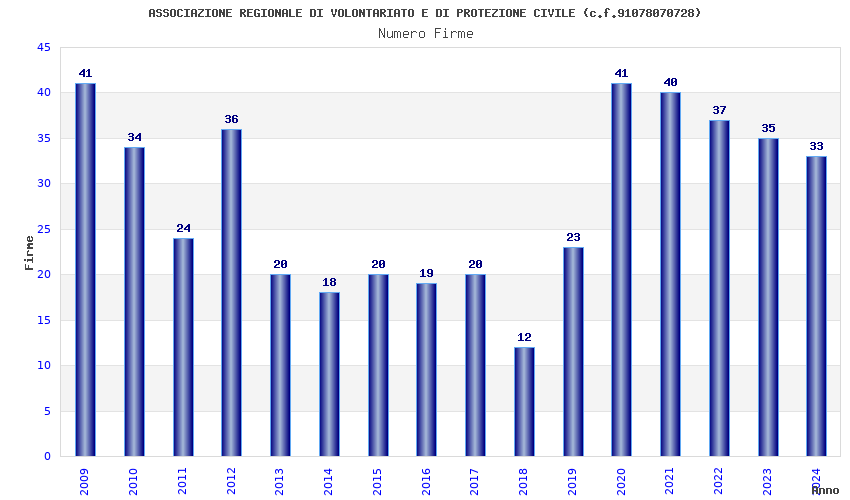 | Anno | Firme | Importi | Media | Naz. | Reg. | Prov. | Comu. |