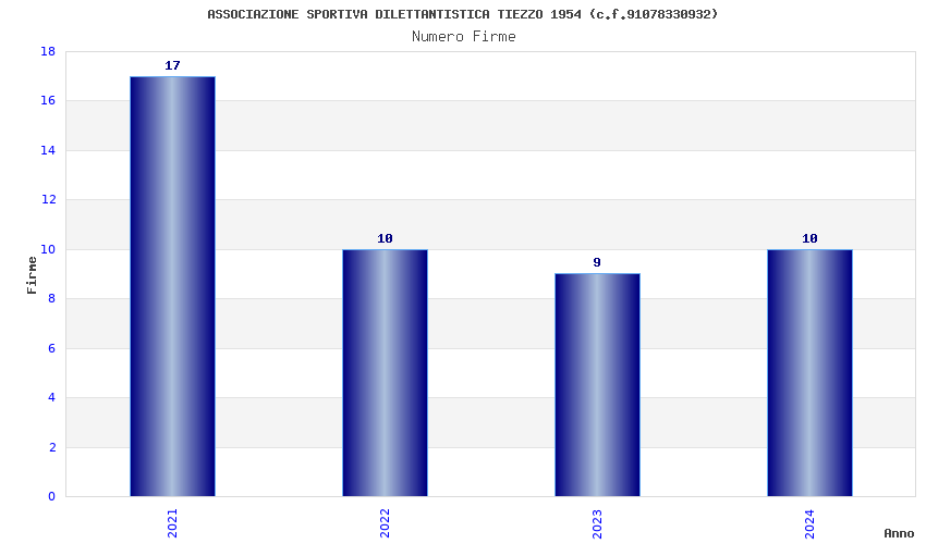 | Anno | Firme | Importi | Media | Naz. | Reg. | Prov. | Comu. |