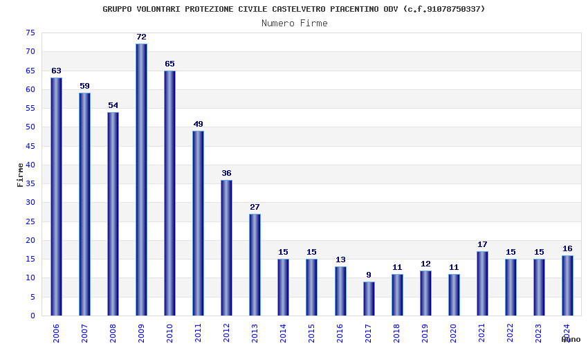 | Anno | Firme | Importi | Media | Naz. | Reg. | Prov. | Comu. |