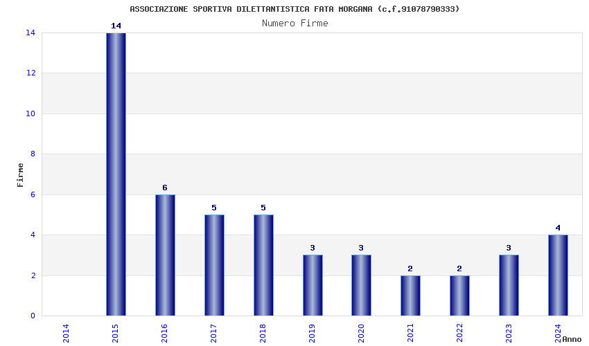 | Anno | Firme | Importi | Media | Naz. | Reg. | Prov. | Comu. |