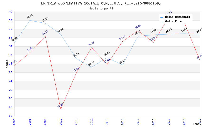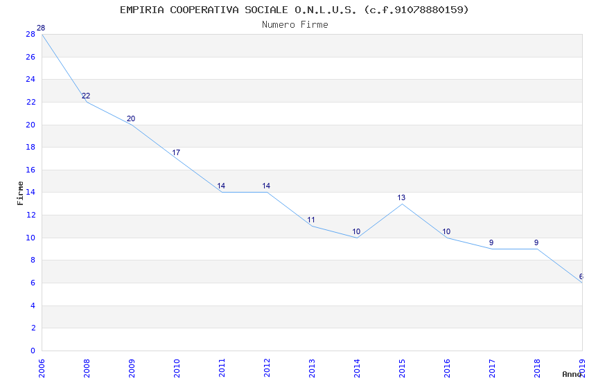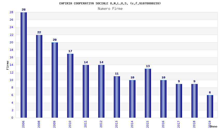 | Anno | Firme | Importi | Media | Naz. | Reg. | Prov. | Comu. |