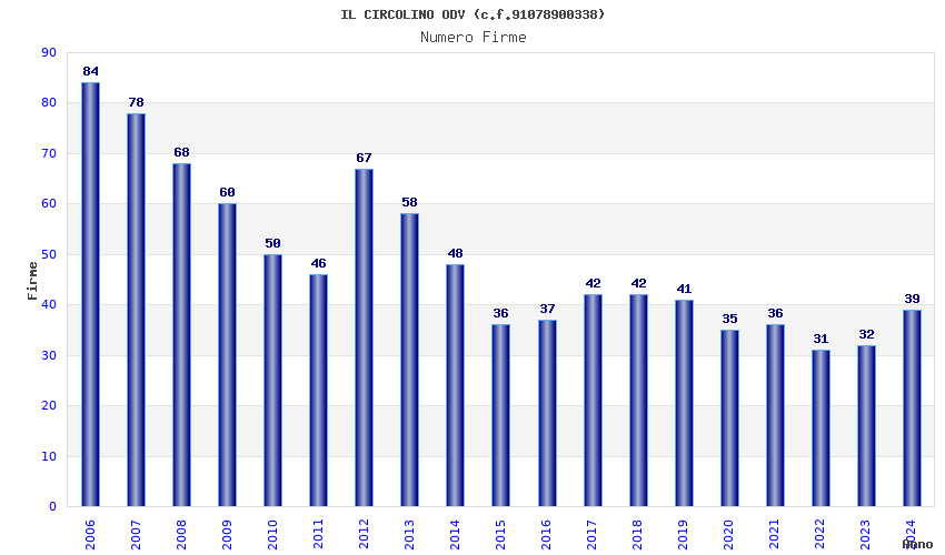 | Anno | Firme | Importi | Media | Naz. | Reg. | Prov. | Comu. |