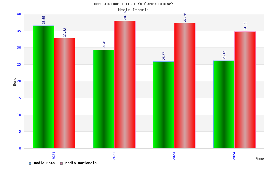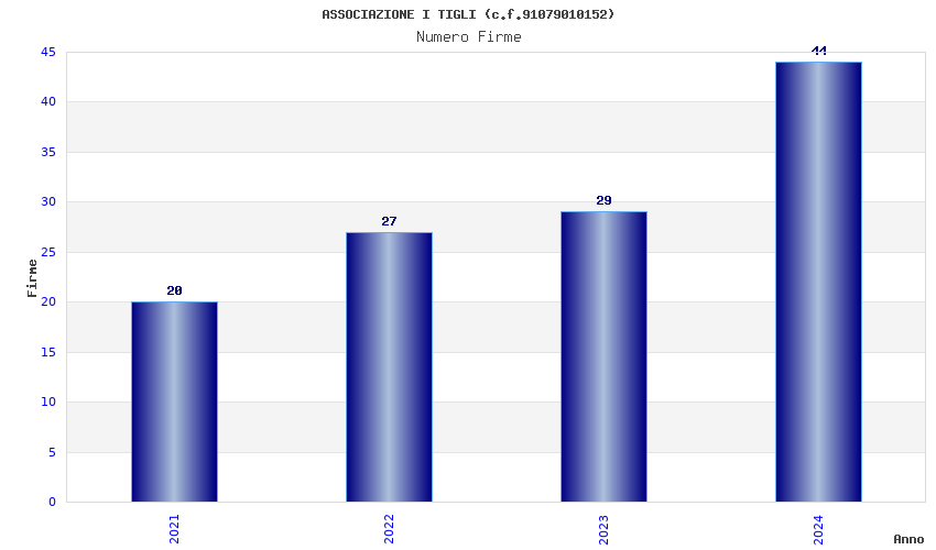 | Anno | Firme | Importi | Media | Naz. | Reg. | Prov. | Comu. |