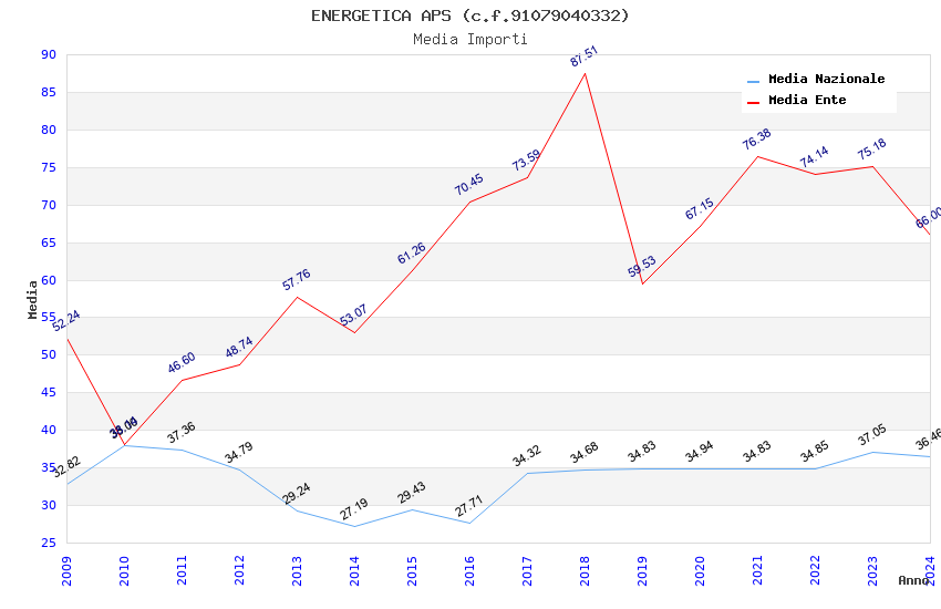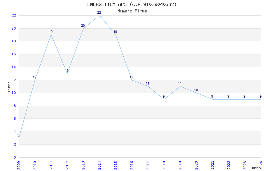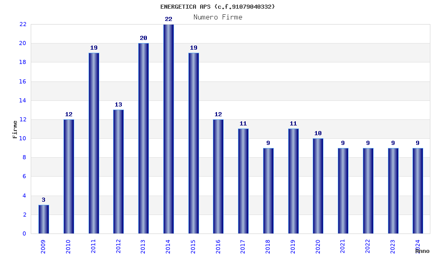 | Anno | Firme | Importi | Media | Naz. | Reg. | Prov. | Comu. |