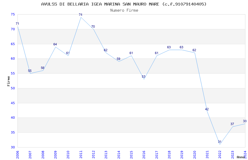 | 2012 | 70 | 2.412,04 | 34,46 | 16.074 | 1.442 | 80 | 7 |