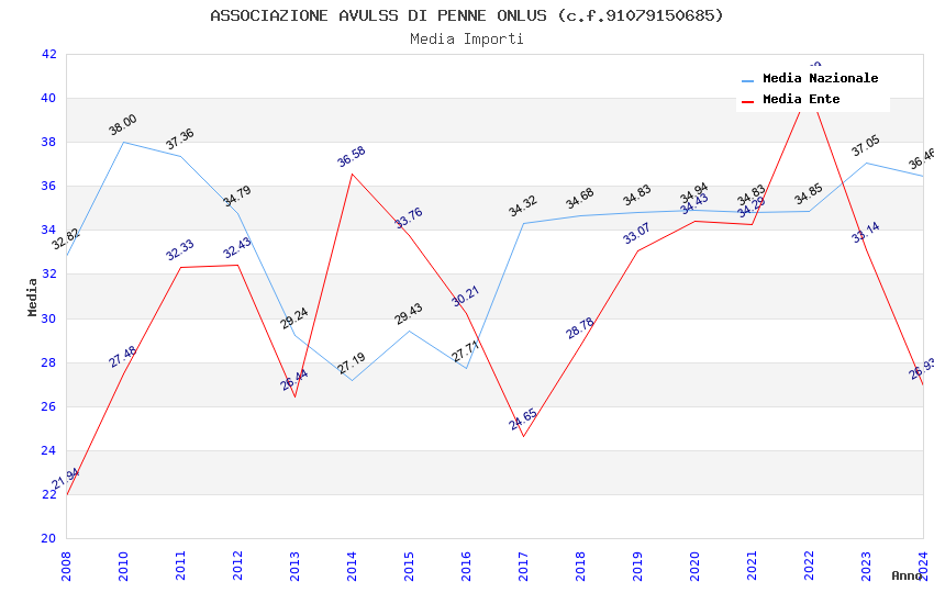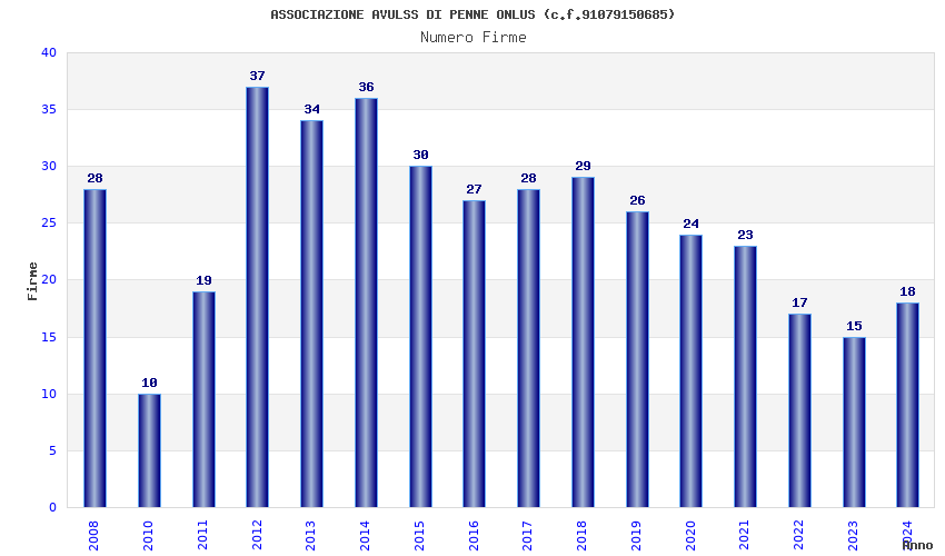 | Anno | Firme | Importi | Media | Naz. | Reg. | Prov. | Comu. |