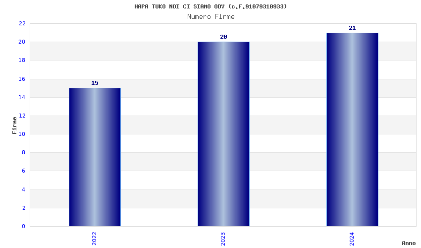 | Anno | Firme | Importi | Media | Naz. | Reg. | Prov. | Comu. |