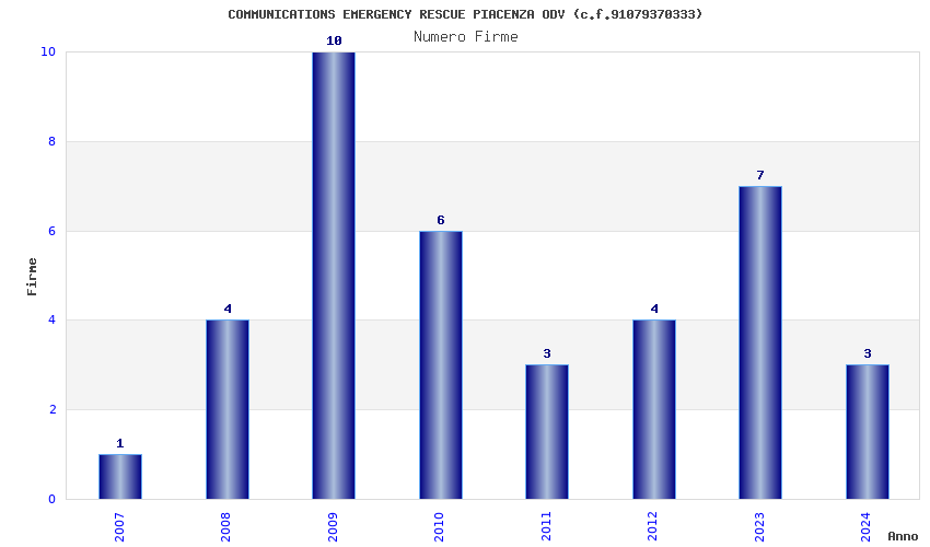 | Anno | Firme | Importi | Media | Naz. | Reg. | Prov. | Comu. |