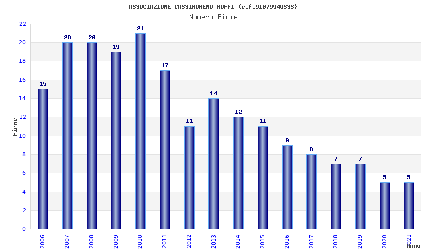 | Anno | Firme | Importi | Media | Naz. | Reg. | Prov. | Comu. |