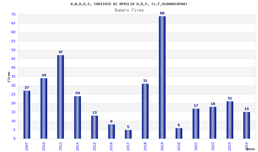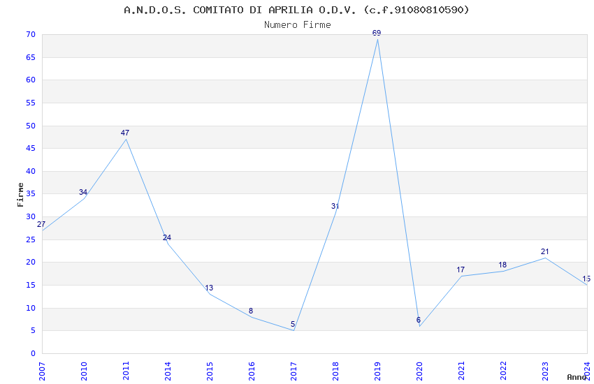 | 2019 | 69 | 2.179,66 | 31,59 | 22.622 | 2.298 | 117 | 9 |