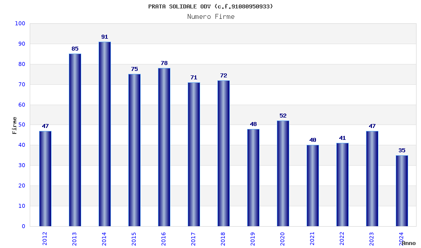 | Anno | Firme | Importi | Media | Naz. | Reg. | Prov. | Comu. |