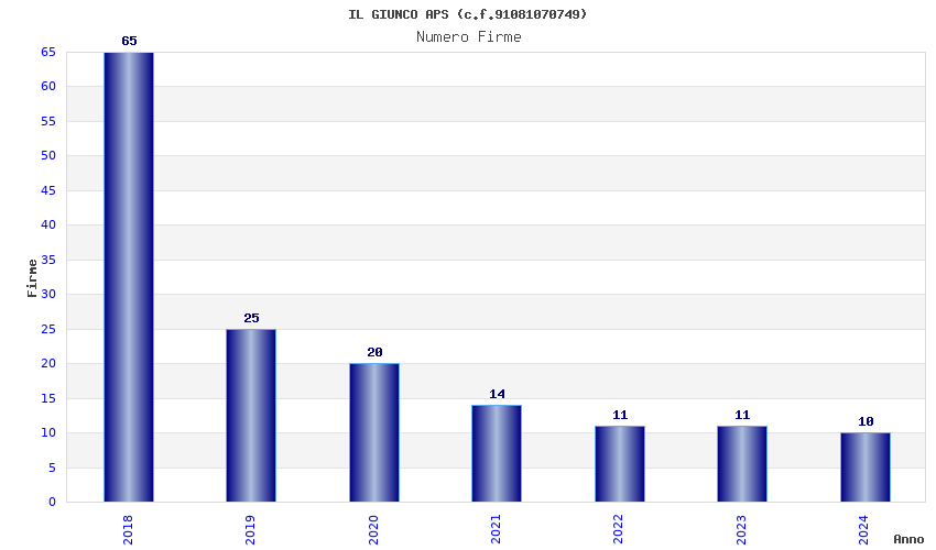 | Anno | Firme | Importi | Media | Naz. | Reg. | Prov. | Comu. |