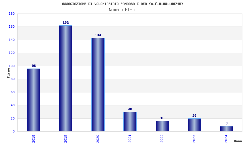 | Anno | Firme | Importi | Media | Naz. | Reg. | Prov. | Comu. |