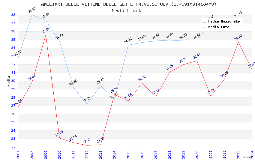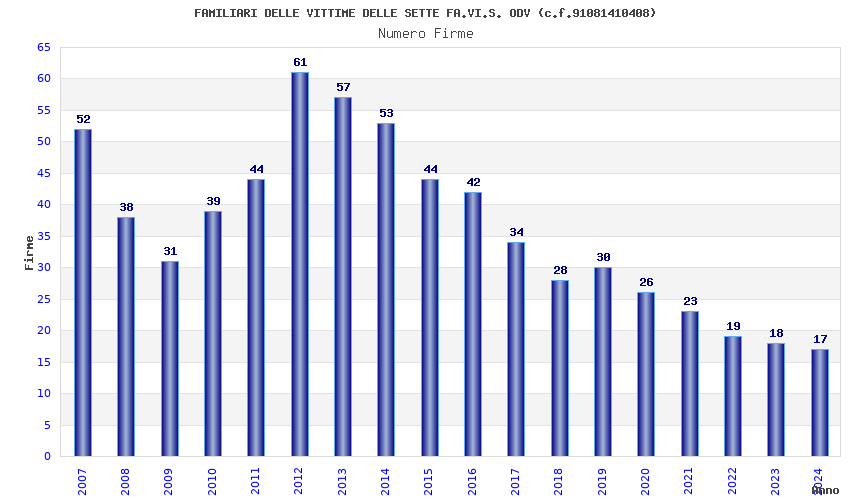 | Anno | Firme | Importi | Media | Naz. | Reg. | Prov. | Comu. |