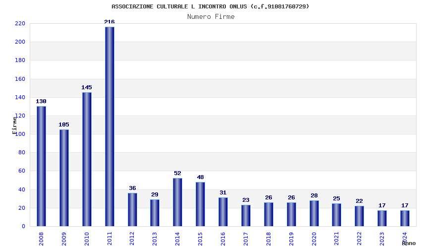 Anno Firme Importi Media Naz. Reg. Prov. Comu.