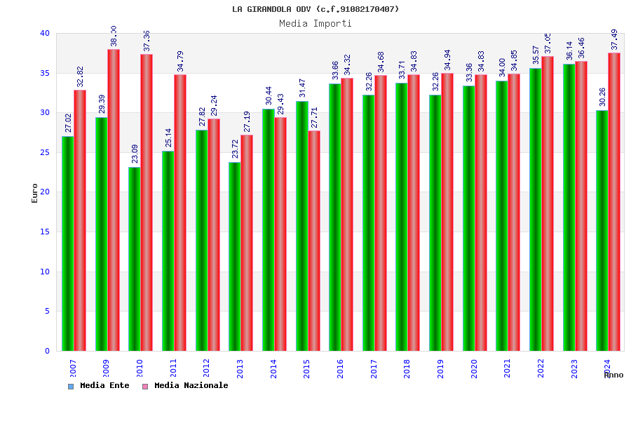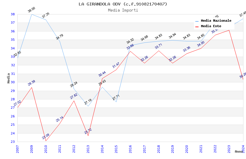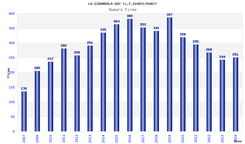 | Anno | Firme | Importi | Media | Naz. | Reg. | Prov. | Comu. |
