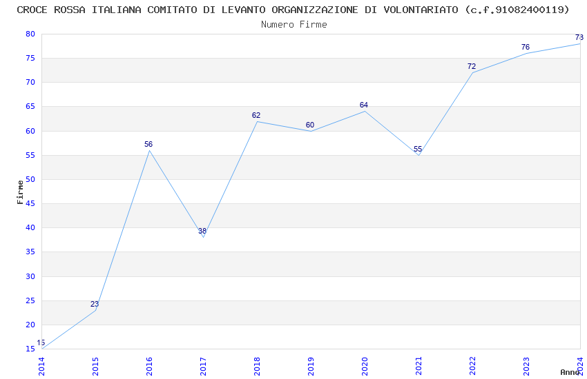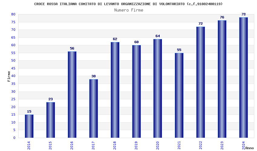 | Anno | Firme | Importi | Media | Naz. | Reg. | Prov. | Comu. |