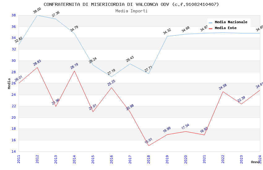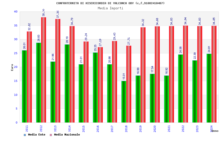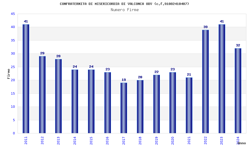 | Anno | Firme | Importi | Media | Naz. | Reg. | Prov. | Comu. |
