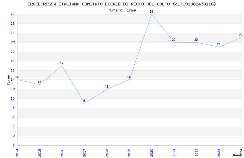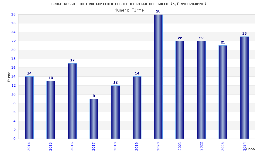 | Anno | Firme | Importi | Media | Naz. | Reg. | Prov. | Comu. |