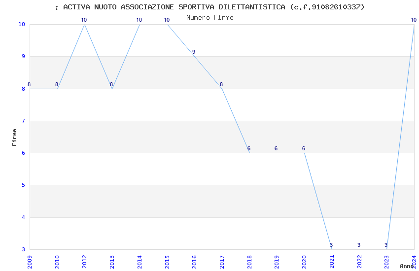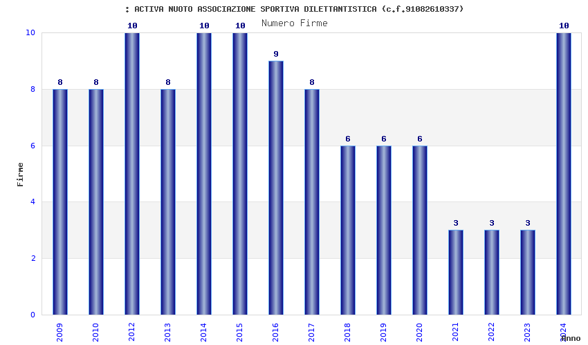| Anno | Firme | Importi | Media | Naz. | Reg. | Prov. | Comu. |
