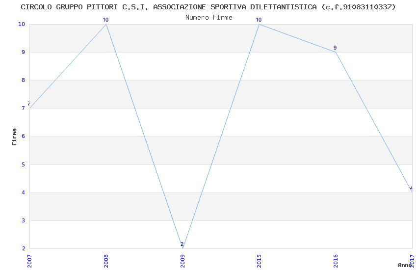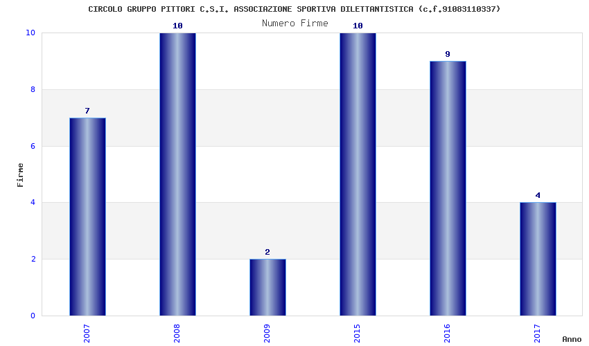 | Anno | Firme | Importi | Media | Naz. | Reg. | Prov. | Comu. |