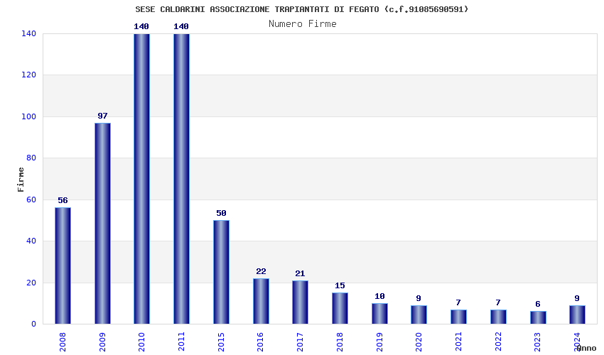 | Anno | Firme | Importi | Media | Naz. | Reg. | Prov. | Comu. |