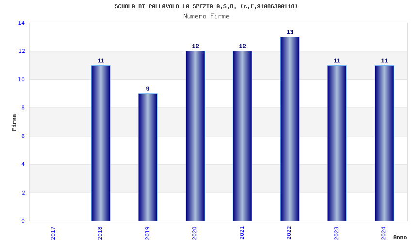 | Anno | Firme | Importi | Media | Naz. | Reg. | Prov. | Comu. |