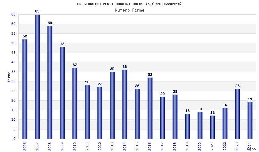 | Anno | Firme | Importi | Media | Naz. | Reg. | Prov. | Comu. |