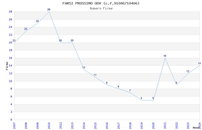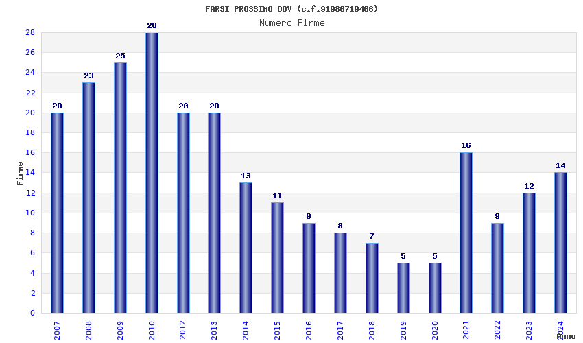 | Anno | Firme | Importi | Media | Naz. | Reg. | Prov. | Comu. |