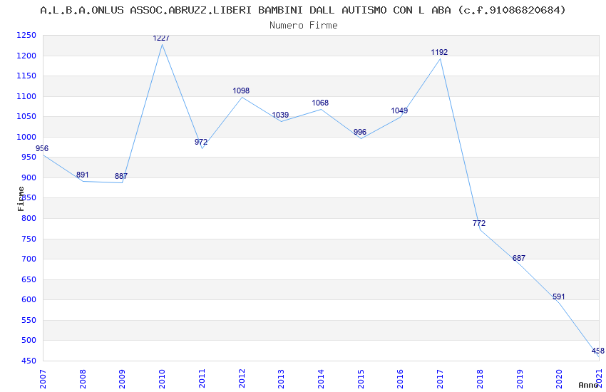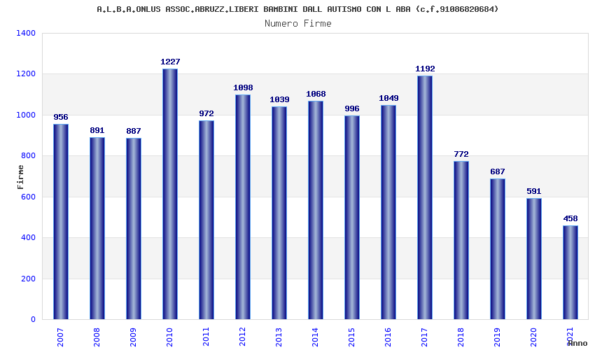 | Anno | Firme | Importi | Media | Naz. | Reg. | Prov. | Comu. |