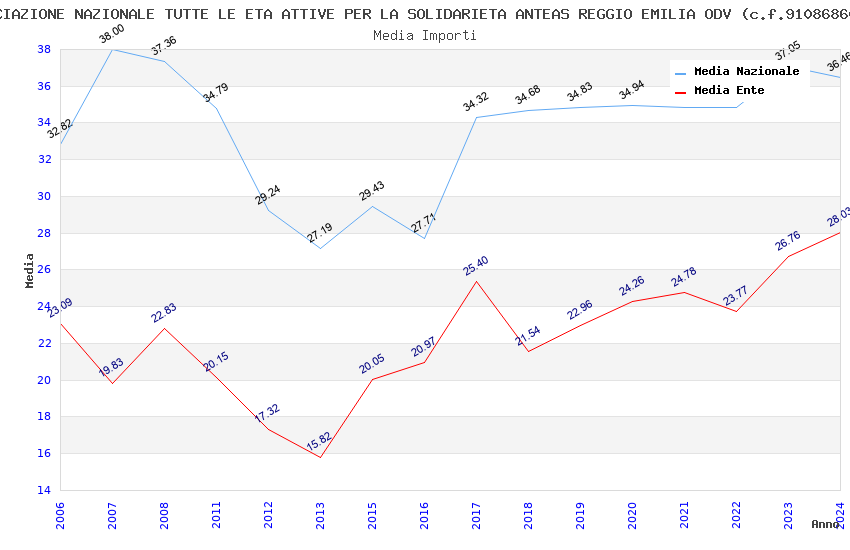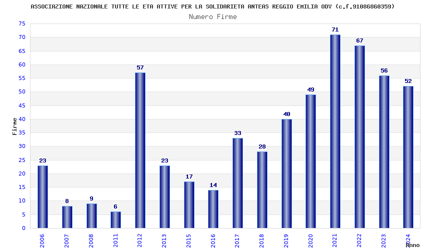| Anno | Firme | Importi | Media | Naz. | Reg. | Prov. | Comu. |